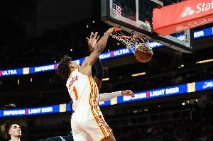 老鹰球星杰伦·约翰逊出战40分16秒,19投10中,三分5中4,罚球11中7,爆砍31分18篮板14助攻7抢断的全能数据,四项数据均创生涯新高,也成为NBA历史首个达成该数据的球员。