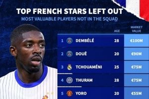 当前位置: 首页 > 资讯 > 足球资讯 > 无缘本期法国队球员身价:登贝莱1亿欧最高,杜埃、琼阿梅尼前三